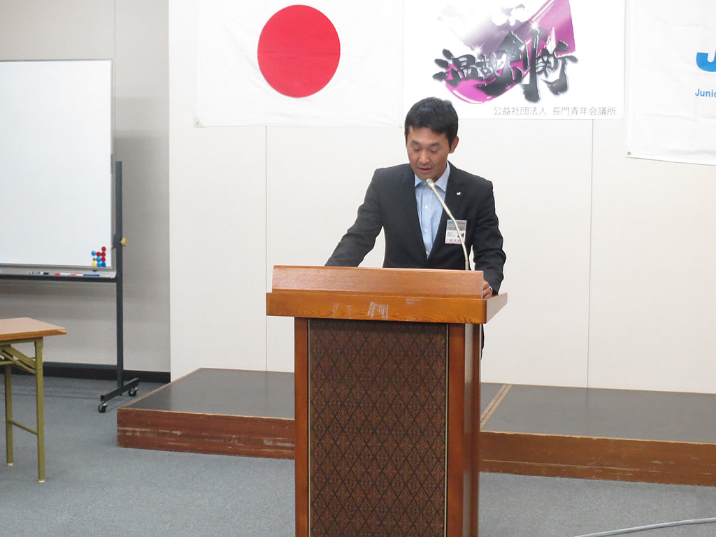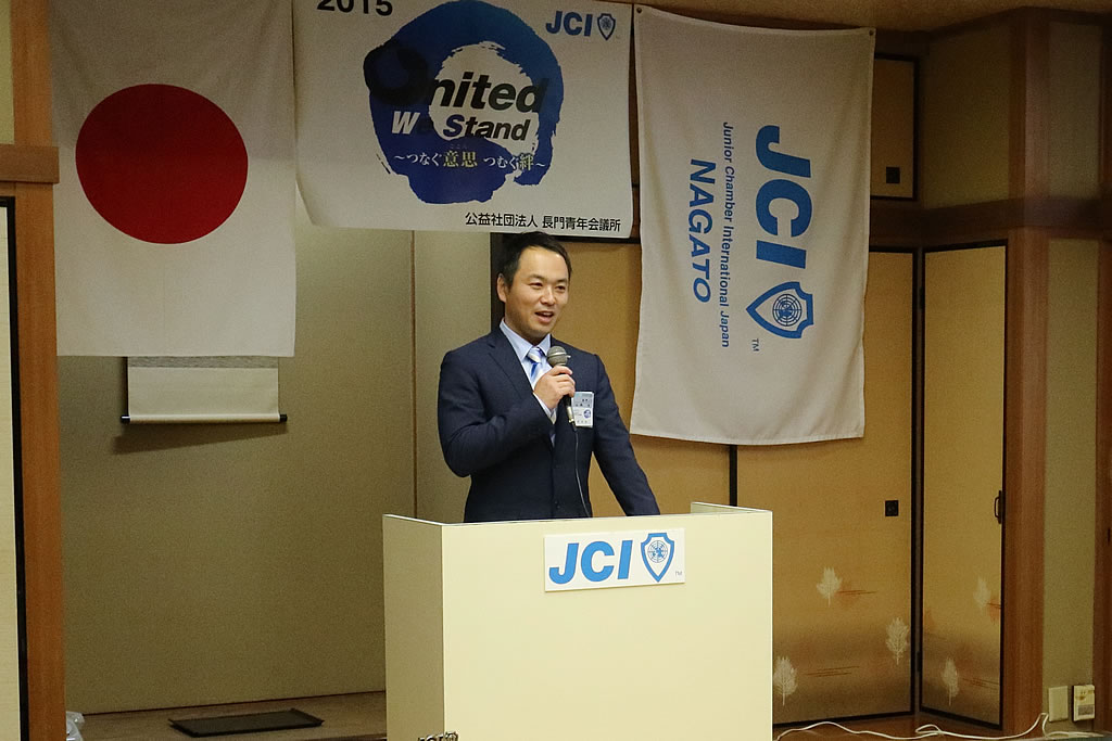 長門青年会議所・7月例会の中で、講師例会を行いました。 今回、講師としてご登壇いただいたのは、長門JCのOBである「有限会社・きらく」の代表取締役・白石裕介先輩です。「有限会社・きらく」は、長門市仙崎の「活魚料理店・きらく」を拠点とし、仙崎イカやフグ料理などのインターネット販売も手がけている会社です。インターネット販売では、楽天グルメ大賞を何度も受賞しており、会社の年間売上高は3億円以上、長門市を代表する企業です。講演の中では、白石先輩の生い立ちから始まり、1代で築いた会社の話、JC活動で得た知識や仲間とのつながりなど、本当に勉強になる話を聞かせていただきました。長門市は街の立地や交通の便利さに、やや不利な点がありますが、そんな中で「何をどうすれば解決出来るのか」を考え、そして実行し、結果を残している白石先輩の行動力に感銘する部分が多々ありました。講演の中で話されていた「仙崎の綺麗な海を次の世代に渡さなければならない」という意思、私達も実行していかなければならないと感じさせられる講演となりました。白石先輩、素晴らしい話を本当にありがとうございました!