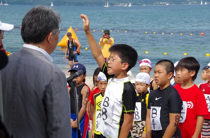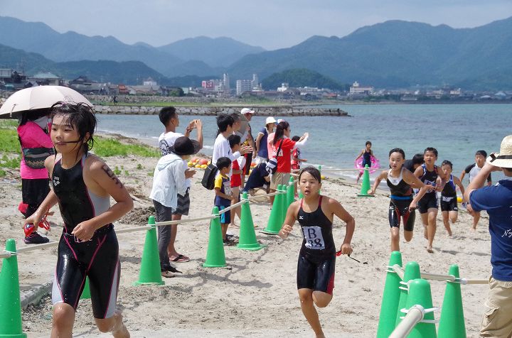 7月17日、長門市仙崎さわや海岸にて「キッズトライアスロン長門大会」が開催されました。今年で23回目と歴史ある大会であり、長門市内のみならず山口・宇部・下関をはじめとした周辺市、海を越えた福岡県からのも参加もあるなど、知名度の高い大会となっております。今年の大会では、小学校1年生から3年生までのAクラスには男子21名女子6名。4年生から6年生までのBクラスには男子21名女子7名。総勢55名もの心身壮健な児童が長門の地に集い、競技が行われました。好天に恵まれた反面、猛暑のなかでの過酷なレースとりましたが、小さな鉄人たちは一人のリタイヤもなく全員が完走しました。準備・設営から大会運営まで大きなエネルギーの必要な事業でしたが、長門JC会員のみならず、山口県トライアスロン連合・ヨットフェスタ実行委員会・ボランティアをはじめとした沢山の方々の協力があり、無事大会を終えることができました。改めて感謝申し上げます。
