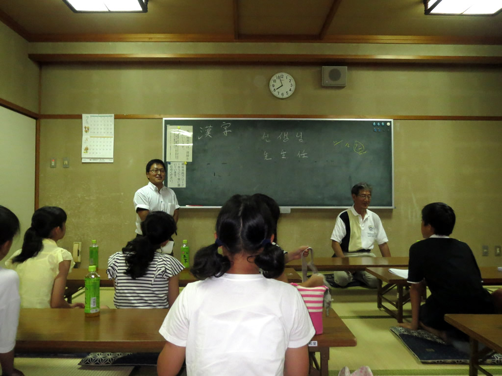 8月5日~8月7日に韓国へ行き、日韓親善交流を行う中学生のハングル講座を開催しました。すぐに会話ができるようになるには全く時間がたりませんが、講師の岩崎先生の指導のもと、皆さん一生懸命勉強をしてくれました。 韓国へ訪問した際は、簡単な単語やジェスチャーで、「伝える能力」なども学習になるのではないかと期待しております。