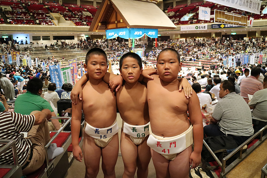 総勢500名、日本全国のチビッコ猛者達が集結し、第32回わんぱく相撲全国大会が東京の両国国技館にて行われました。 長門地区からは6年生代表・飯村くん、5年生代表・中村くん、4年生代表・中谷くんの3名が出場しました。結果は、飯村くん・2回戦敗退、中村くん・3回戦敗退、中谷くん・2回戦敗退。両国国技館の土俵で大観衆に囲まれ、力を出し切れなかった部分もあったかもしれませんが、3人にとっては良い経験になったはずです。この経験を次に生かすためにも、今後も相撲道に勉学に、邁進をしていってくれればと思います。