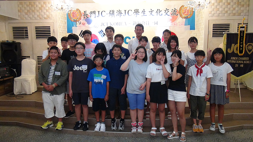 長門市の中学生10名と共に、韓国の昌原市鎭海地区へ日韓親善交流へ行ってまいりました。この事業は、長門JCと姉妹締結している韓国・鎭海JCとの間で毎年開かれている中学生同士の交流事業で、今年で第36回目を数えます。釜山空港にて両国の中学生が合流し初めは人見知りをしていたものの、買い物→食事→ホームステイなどを通じ、2日目の朝にはみんな大の仲良しになれたようで安心しました。言葉が全てわからなくても、片言の言語やジェスチャーなどで「伝える・読み取る」ということ、また他国の文化に触れて自国との違いを「学ぶ」というような良い経験が出来たのではないかと思います。両国の中学生ともにこの経験を大切にし、将来へ生かせるものにしていってほしいと願います。最後に、2016年度の長門青年会議所・日韓親善交流にご協力いただいた皆様方に、心より感謝申し上げます。誠にありがとうございました。