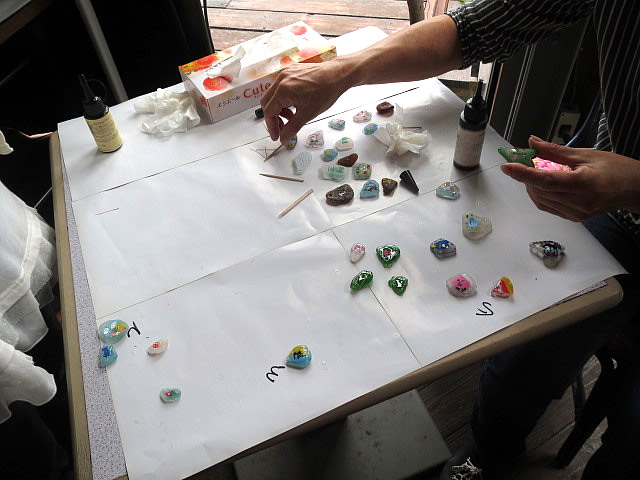10月1日(土)に、長門市油谷向津具のパタ屋に於いて、ひまわり会を開催しました。今年は、多数の児童・生徒・先生のご参加を頂き、油谷湾を眺めながらシ―グラスを使ったストラップ作りを行いました。はじめに色や形の気に入ったシ―グラスを選び、絵や文字など自由にペイントを行いました。自らが考え主体的に行動している姿をあちらこちらで見ることが出来、頼もしさを感じました。また、他校の児童・生徒との班編成にしたため、コミュニケーション能力も高まったのではないでしょうか。お昼前には、シ―グラスストラップ・ストーンアートをそれぞれが完成させ、パタ屋の美味しいカレーをご馳走になりました。 JC メンバーを含め、参加した方々の笑顔が素敵な事業となりました。