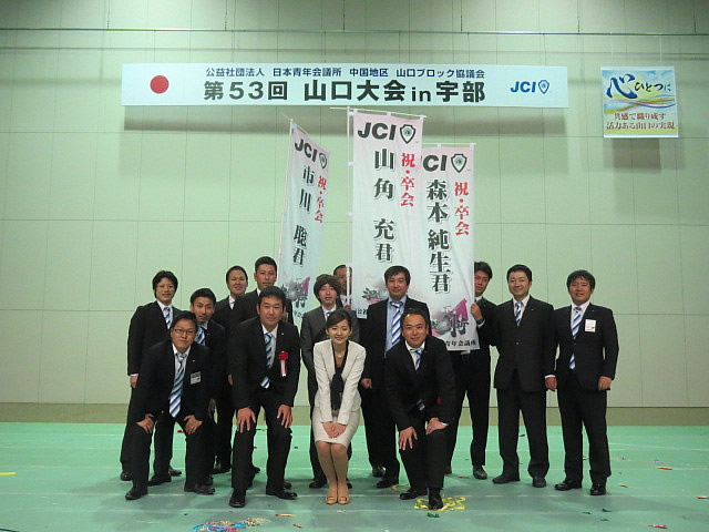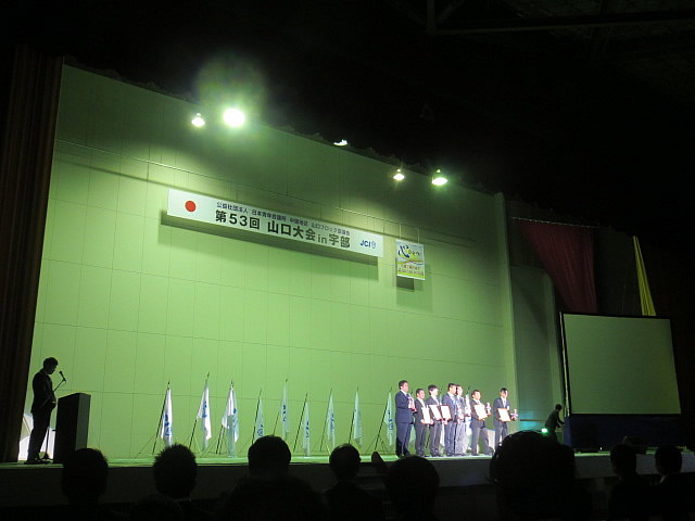 10月22日に俵田翁記念体育館にて山口大会in宇部が開催されました。この山口大会では褒賞の発表、次回開催地への伝達式が行われ、その後、卒会生を送り出すセレモニーが執り行われました。今年、長門青年会議所からは市川理事長、山角直前理事長、森本君の3名が卒会します。とても心に残るセレモニーだったのではないかと思います。