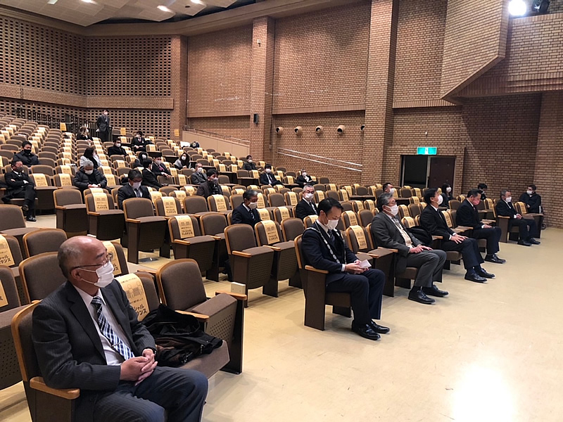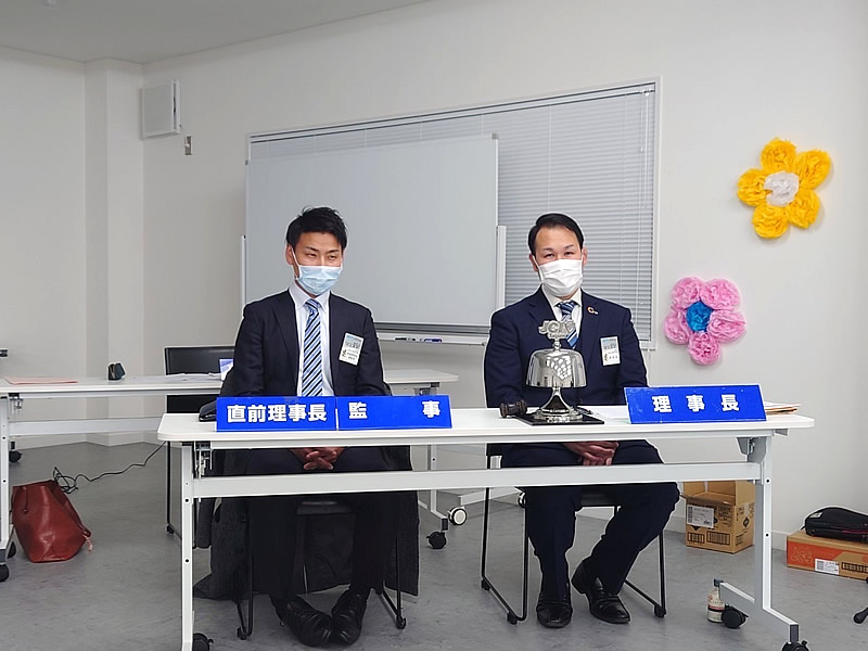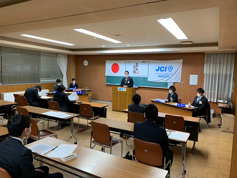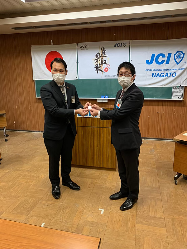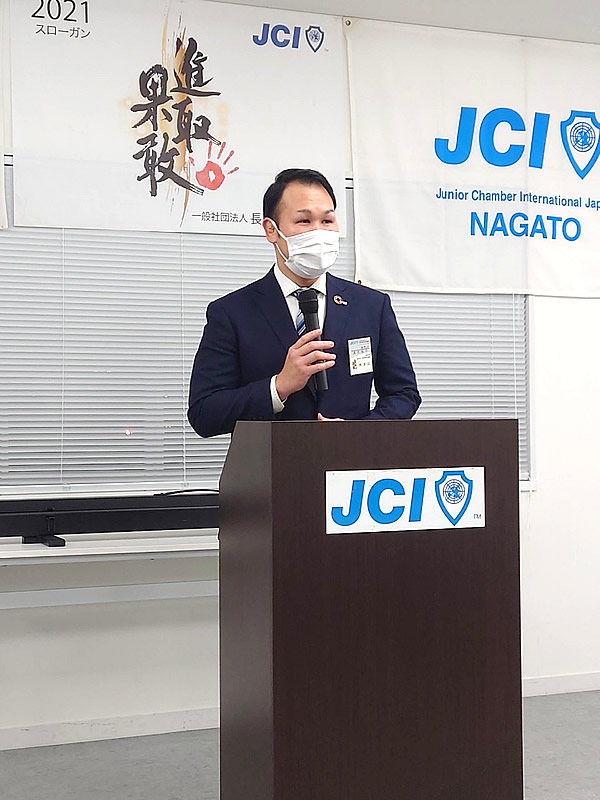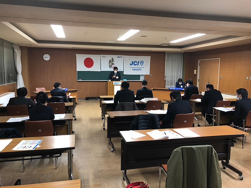 長門市中央公民館にて、第57回1月総会が開催されました。総会では決議事項も無事に承認され、清水理事長のもと新たな組織が決定し晴々しくスタートを切りました。懇親会はコロナ禍の為、大講堂にて飲食なしの御披露目会に変更いたしました。会員はもちろん来賓、OBの皆様にもマスクの着用、検温、消毒、問診表の記入をお願いし、会場の座席もしっかりとソーシャルディスタンスをとりました。例年よりも静かな会場で今年1年の活動や理事長の決意もより伝わったと思います。今年のスローガンを「進取果敢」かわりゆく時代とともに進化をしながら、一歩ずつ力強く前進していきたいと思います。