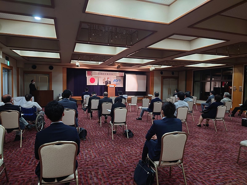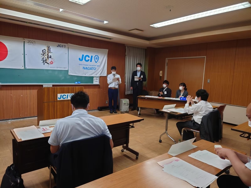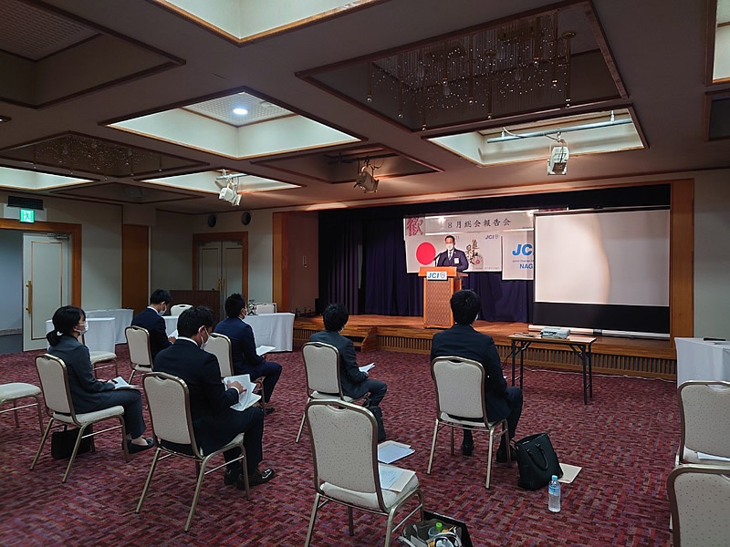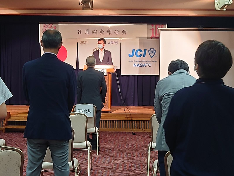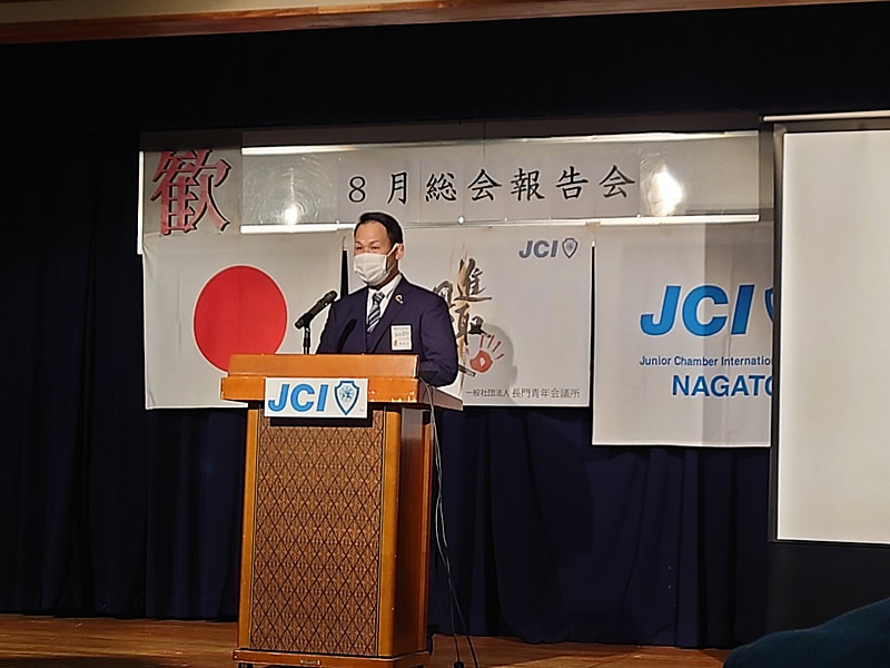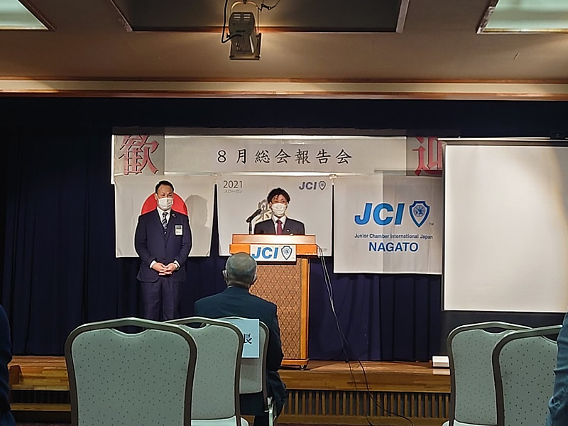 8月23日(月)一般社団法人長門青年会議所8月例会、8月総会 8月総会報告会を開催しました。総会では、次年度理事長予定者選任の件について賛成多数で石川貴之君が次年度理事長予定者として承認されました。また総会報告会では清水理事長による挨拶並びにプレゼンターとして事業活動の報告最後にOB会員の有田大梧先輩による、三本締めで閉会いたしました。まだ大変不安な時期が続いてますが、会員一同頑張っていきます。総務室委員会の皆様設営お疲れ様でした。