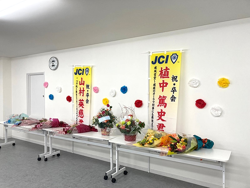 12月16日(木)12月例会 卒会式を開催しました。設営、準備などは、総務室が担当致しました。褒章では、最優秀会員賞に田中宏之君 最優秀新人賞に松本徹君が受賞されました。田中君 松本君本当におめでとうございます。卒会式では、植中篤史君 山村英慈君 直前理事長川上英宏君 3名が本日で卒業されました。時には厳しく接していただいた、お兄さん的な存在の皆様がいなくなるのは寂しくも感じます。ご卒業されても変わらぬご指導を宜しくお願い致します。最後に胴上げで!ご卒業おめでとうございます。お疲れ様でした。