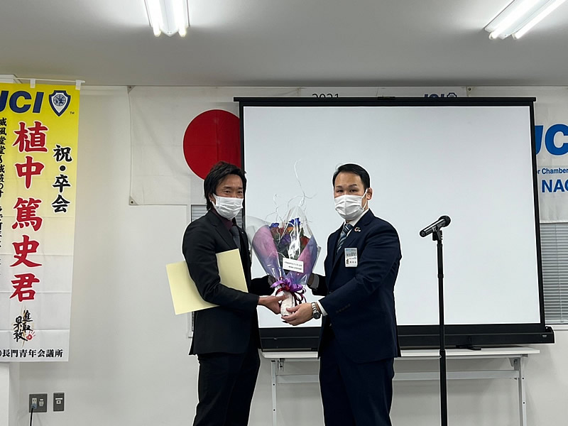長門市役所にて「新型コロナウイルスワクチン集団接種実施協力に係る協定締結団体への感謝状贈呈式」が行われ、長門青年会議所からは村田総務室長と久永専務理事が出席しました。最近は落ち着きを見せている感染状況も、医療従事者の方や、行政の方、他の協力団体の皆様と作り上げてきた結果だと思います。そんななか、このような感謝状をいただけることは会としても大変誇らしく思えます。 今後も、地域と密接に関わり合いながら、ニーズや時代にあった活動を行ってまいります。