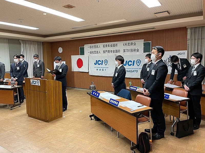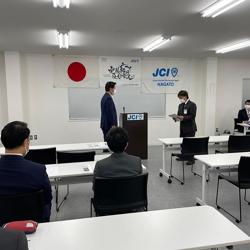 長門市しごとセンターにて6月例会を開催いたしました。2022年度がスタートしてから早くも半年目を迎え、今後行なっていく事業についての話し合いも行い、会員それぞれがさらに気を引き締める場となりました。また、例会前に岩国青年会議所の方々が、7月3日(日)に行われる「第58回山口ブロック球技大会」のPRにお越し下さいました。「やっち やっち やりあげちゃれ!」の掛け声のもと、球技大会へ向けても全員が気合いを入れました。岩国青年会議所の皆様、わざわざ長門の地までお越し下さいましてありがとうございました。当日は楽しみにしております!