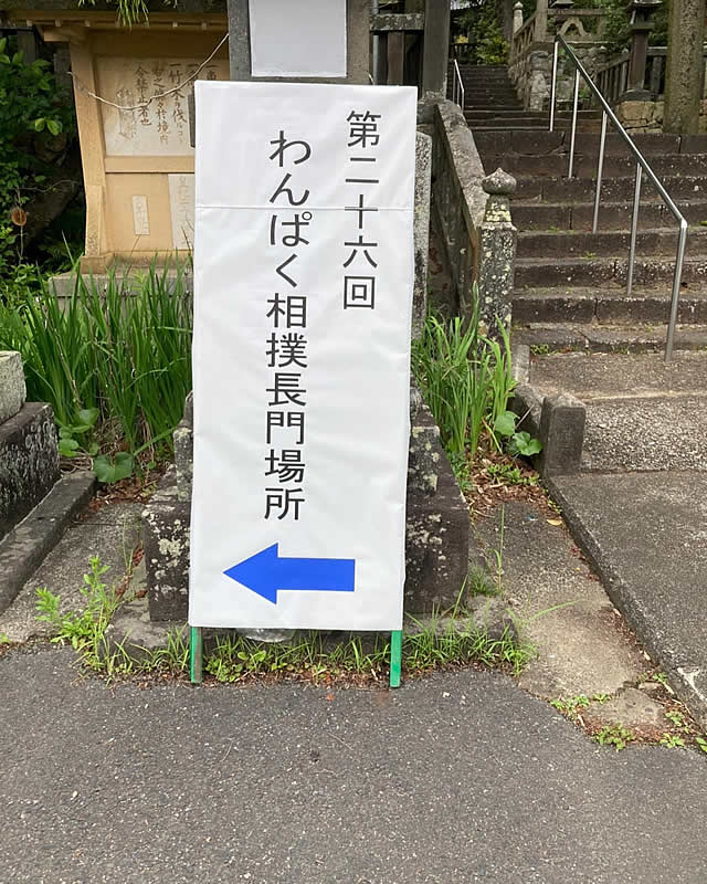 長門市飯山八幡宮境内相撲場にて「第26回わんぱく相撲長門場所」が開催され、ご家族も含め多くの方々にご来場頂きました。白熱した取組みに我々も感動し、勝敗以上に得られるものが小学生たちにはあったのではないかと思います。4年生~6年生の男子の優勝されたみなさん、全国大会頑張って下さい。そして、事前準備から当日の運営にご協力いただきました皆様、ありがとうございました。