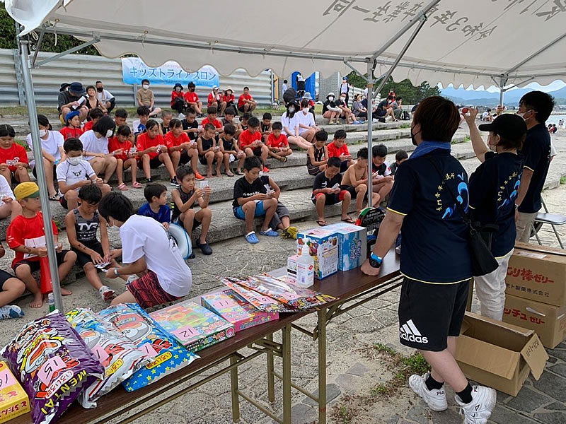 長門ヨットフェスタ2022が開催され、その中の関連イベントとして『キッズトライアスロン』が長門市さわやか海岸にて開催されました。小学生を対象として行われ、Aクラス(1年生~3年生)、Bクラス(4年生~6年生)の部に分かれて合計35名が参加しました。スイム・バイク・ランの3種目で競技が行われ、沿道からも保護者やチームメイトからたくさんの応援がありました。苦しいながらも見事全員が完走し、無事競技を終えることができました。競技後には参加選手を対象にビンゴ大会を行い、色々な景品を持ち帰ってもらいました。子供達にとっては思い出となる一日になったのではないかと思います。各クラスで入賞された選手の方々おめでとうございます。そして、前日からの準備にご協力頂きました皆様、当日ボランティアとして来ていただいた、長門高校、大津緑洋高校(大津校舎)の生徒の皆様、山口県トライアスロン連合の皆様、本当にお疲れ様でした。