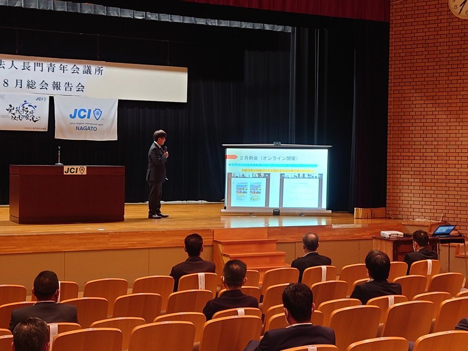 長門市中央公民館大講堂にて、『第59回8月総会報告会』を開催いたしました。石川理事長よりOB会の皆様へ、挨拶・上半期の事業報告、そして今後行う残りの事業についてご説明をさせて頂きました。また、臨時総会にて2023年度理事長予定者の件について『久永信也君』が満場一致にて承認され、合わせてご紹介もすることができました。残りの事業も残る中、来年度へ向けても準備を進めていかなければなりません。様々な課題もありますが、一つずつ解決し、会員全員一丸となり力強く前へ進んでまいります。