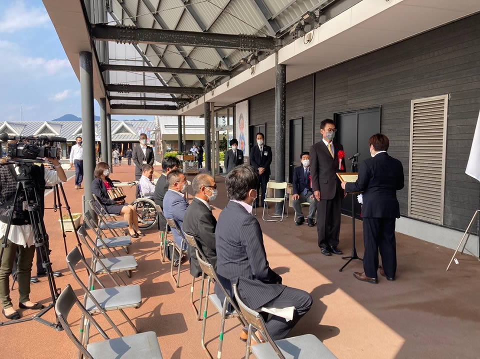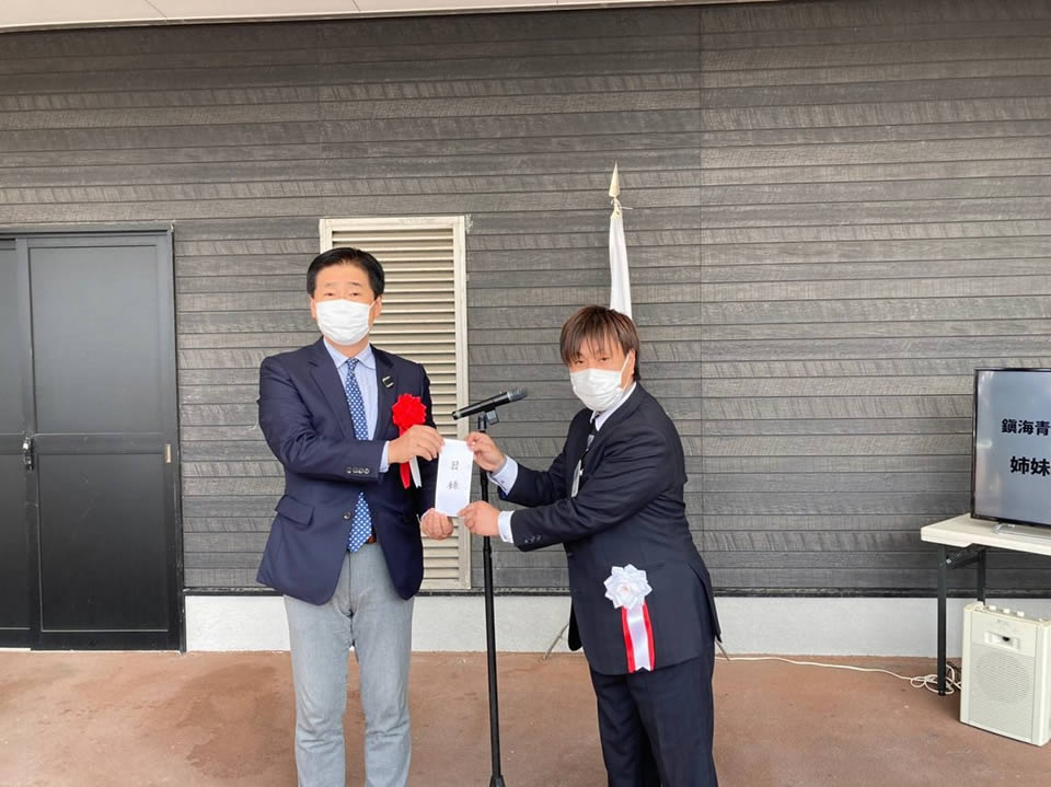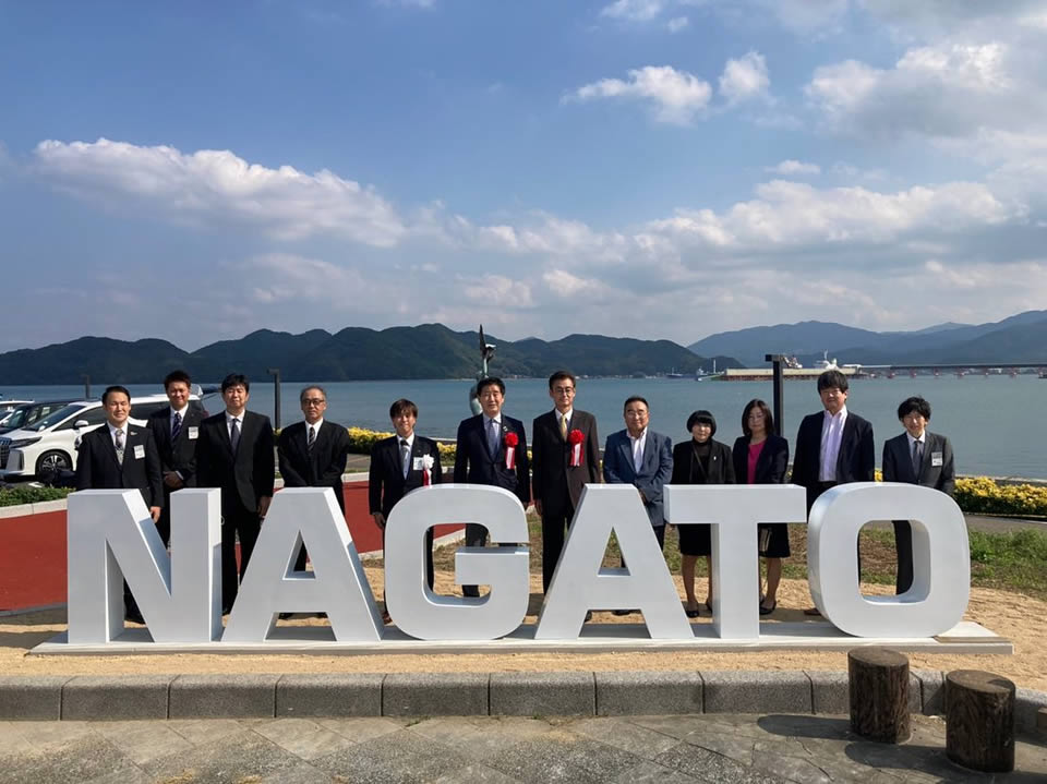 道の駅センザキッチン敷地内にて『日韓姉妹締結55周年記念式典並びに贈呈式』を開催いたしました。長門青年会議所では今年で韓国・鎮海(チネ)青年会議所と姉妹締結55周年という節目の年を迎えました。これまでの55年の歴史を振り返り、感謝状の贈呈と、記念品として、写真スポットとなる『文字オブジェ』を長門市へ贈呈させていただきました。なかなか直接会って交流を行うという形ができない状況が続きますが、60周年に向けた機運を高める場となりました。センザキッチン入口のクジラモニュメント下に文字オブジェが設置されていますので、来られた際はぜひご覧になられて下さい。